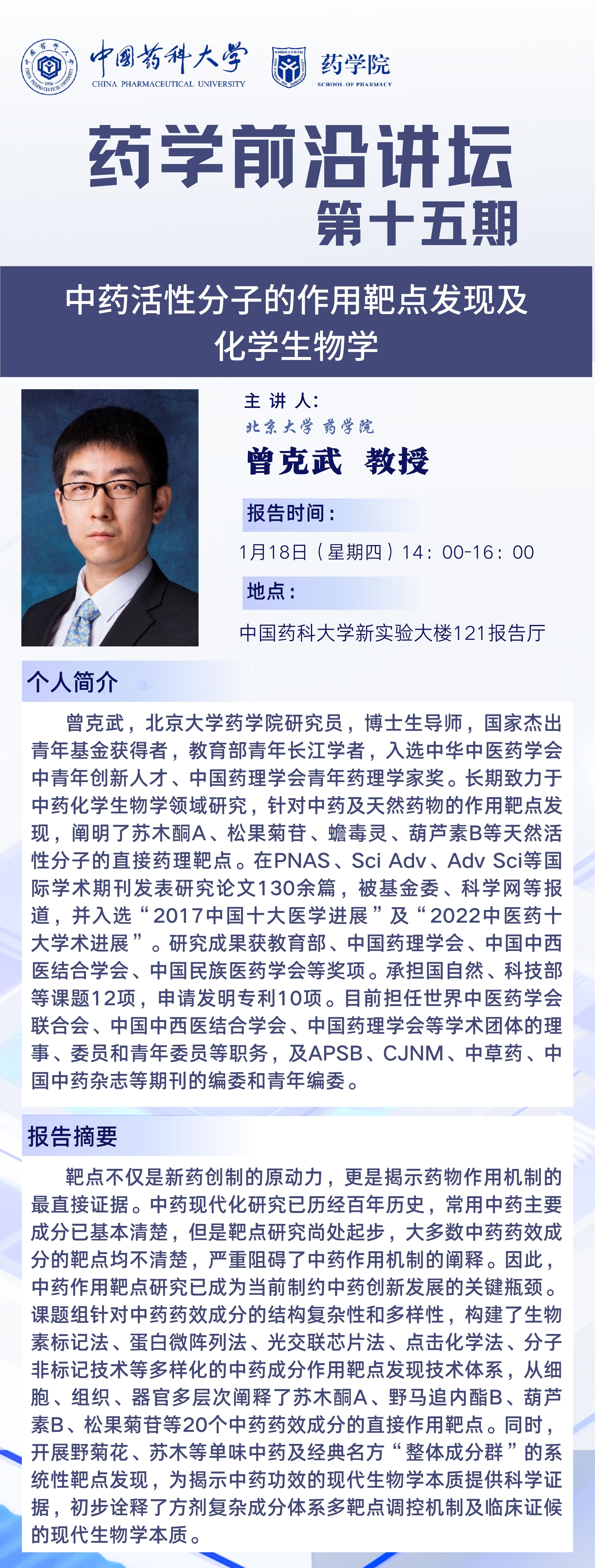 太阳集团tyc151第十五期药学前沿讲坛通知