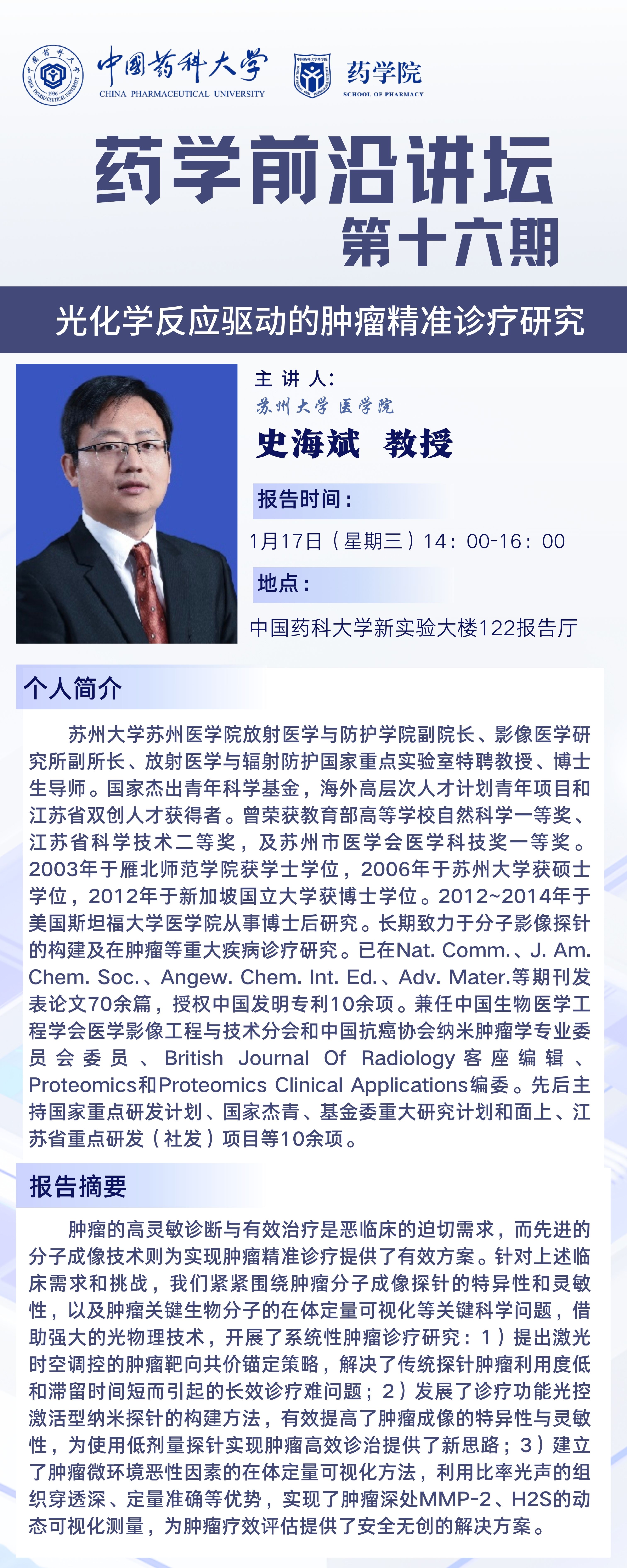 太阳集团tyc151第十六期药学前沿讲坛通知