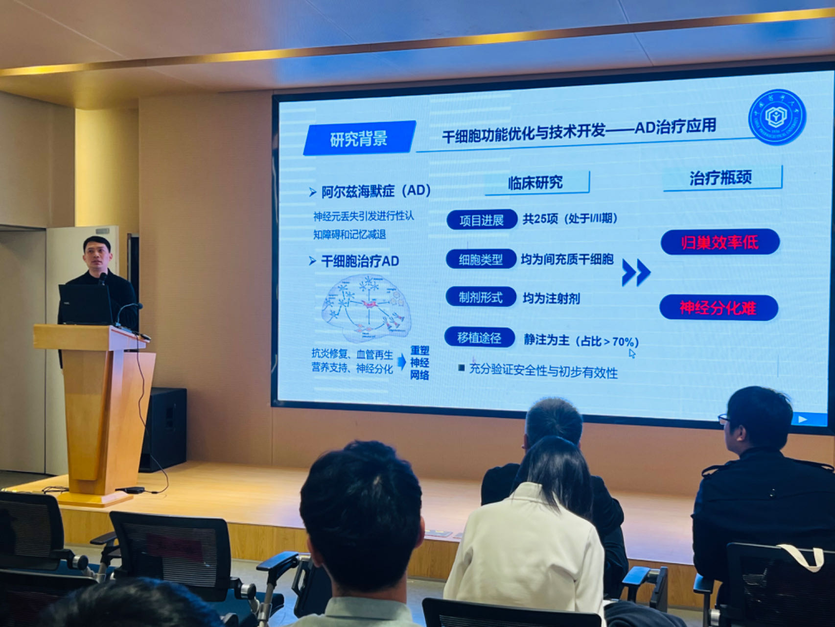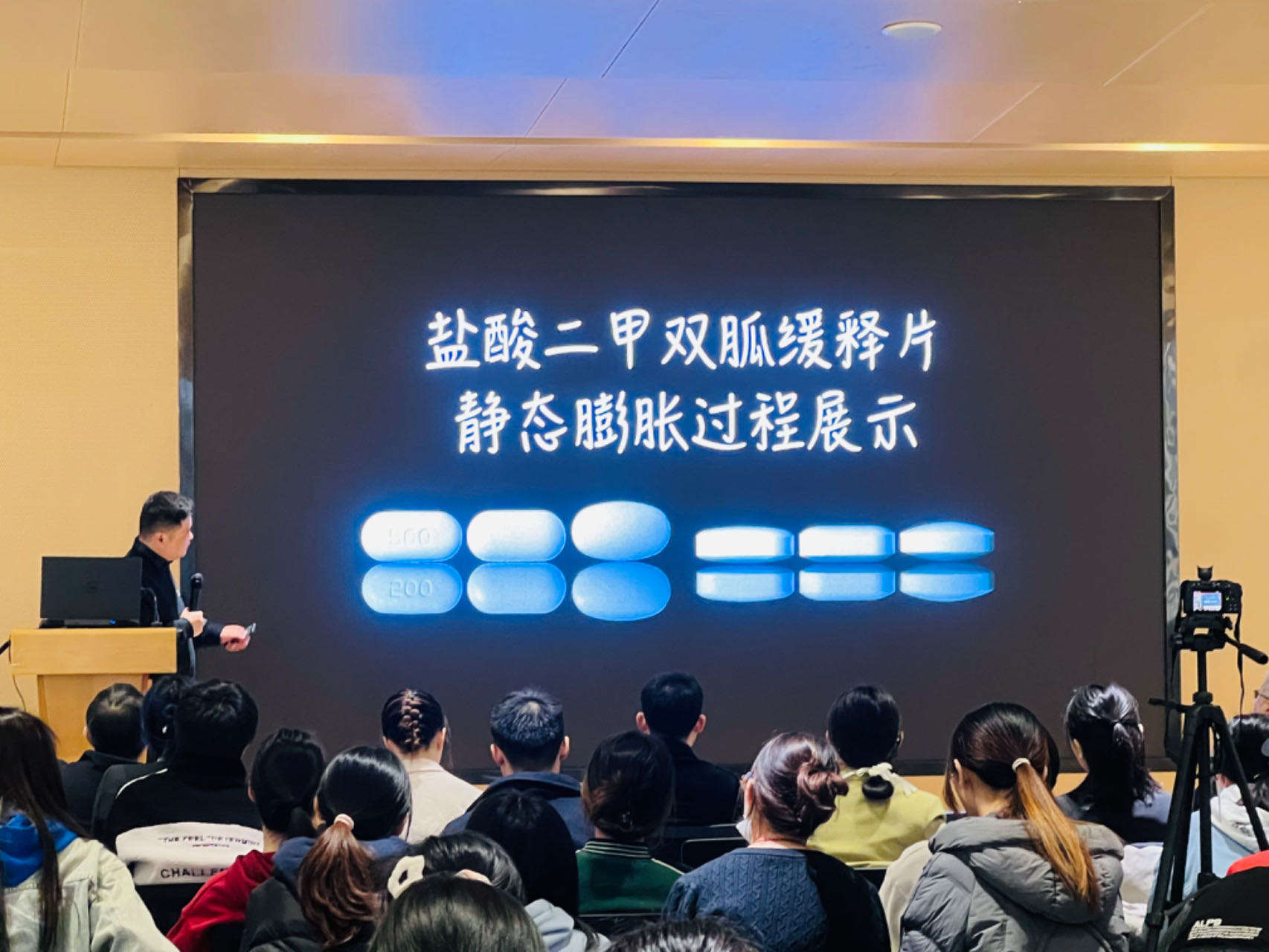 首先,四川大学华西太阳集团tyc151邓黎副教授和公司太阳集团tyc151药剂系副主任丁杨教授受邀先后作专家报告。邓黎副教授以“可视化技术用于固体制剂崩解释放特性的探索”为题,详细介绍并动画演示了如何利用可视化技术探索固体制剂崩解释放特性,阐述了药品研究创新的新方向,为在场观众呈现了一场视觉盛宴。丁杨教授以“干细胞疗法应用基础研究与转化思考”为题,围绕归巢效率低和神经分化难两个治疗瓶颈,介绍了研究团队在相关领域取得的重要成果。参会师生与两位专家进行了深入交流,现场气氛热烈。