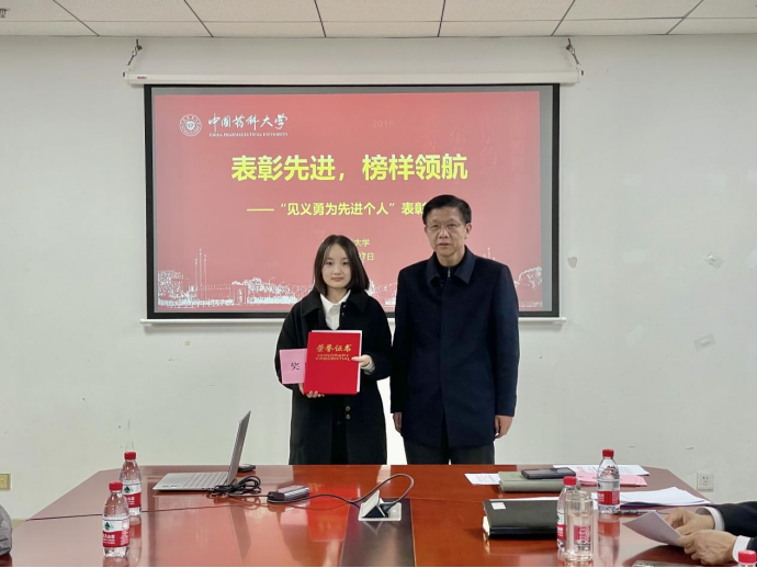 为“见义勇为先进个人”张语轩颁发荣誉证书及奖金