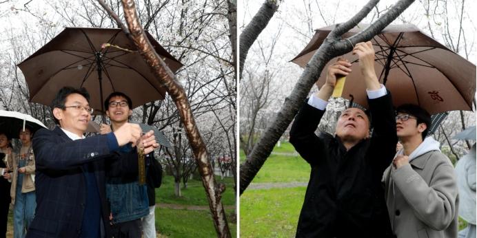 本届樱花节延续往年传统,开启新一年“认养一棵樱花树”活动。董事长郝海平、员工王勇为班级代表颁发认养树牌和认养证书。与会领导和嘉宾分别向班级代表赠送樱花树养护工具,并和认养班级代表为认养樱花树挂牌。