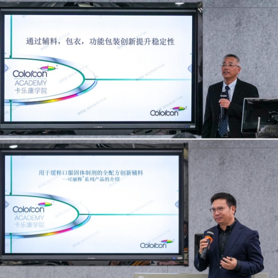 卡乐康中国首席技术服务经理刘瑞明带来技术讲座《通过辅料、包衣、功能包装创新提升稳定性》,以卡乐康公司欧巴代系列薄膜包衣系列产品为案例介绍薄膜包衣产品的最新进展。卡乐康中国高级技术服务经理尹红卫以《用于缓释口服固体制剂的全配方创新辅料》为题,以卡乐康公司可丽释系列功能包衣系统为例,介绍了多功能包衣系统在简化制剂开发、提高生产效率、调节药物释放等方面的重要突破。