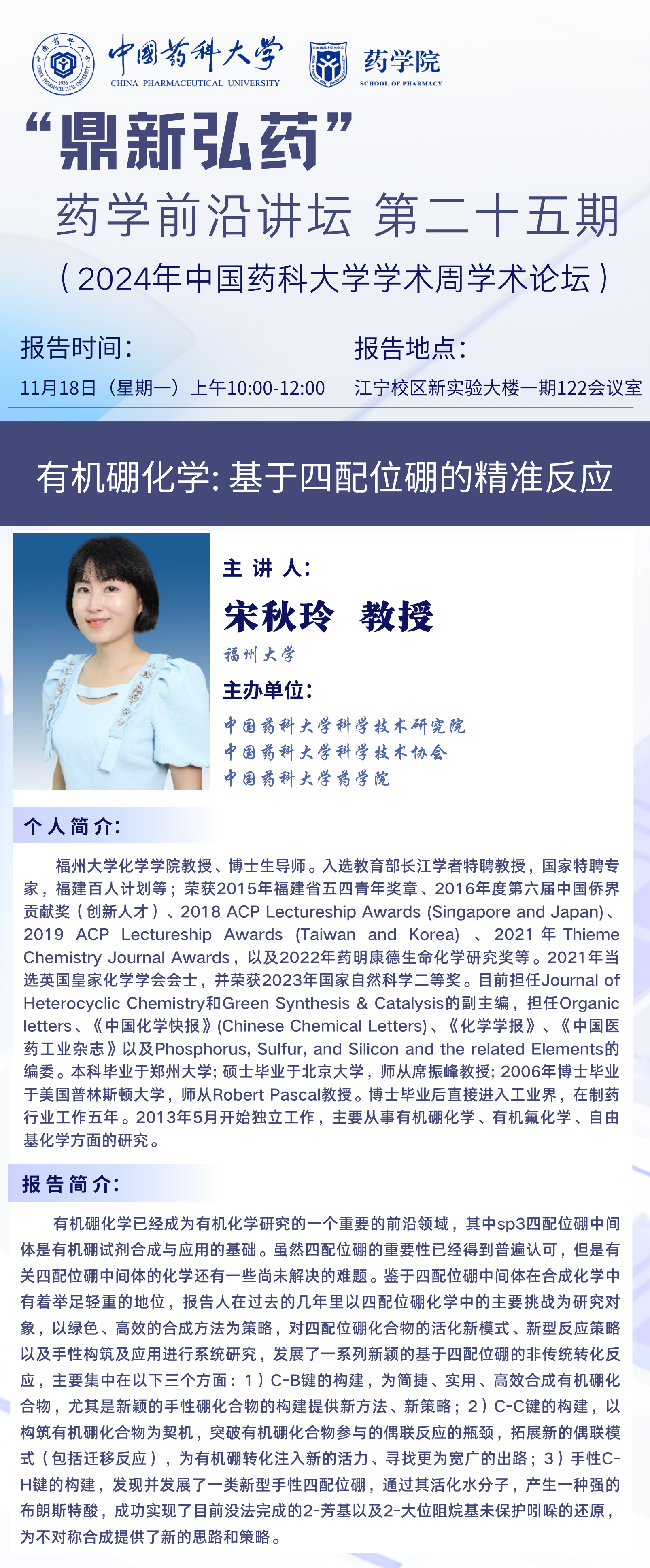 “鼎新弘药”药学前沿讲坛第二十五期通知