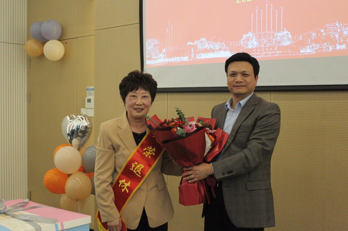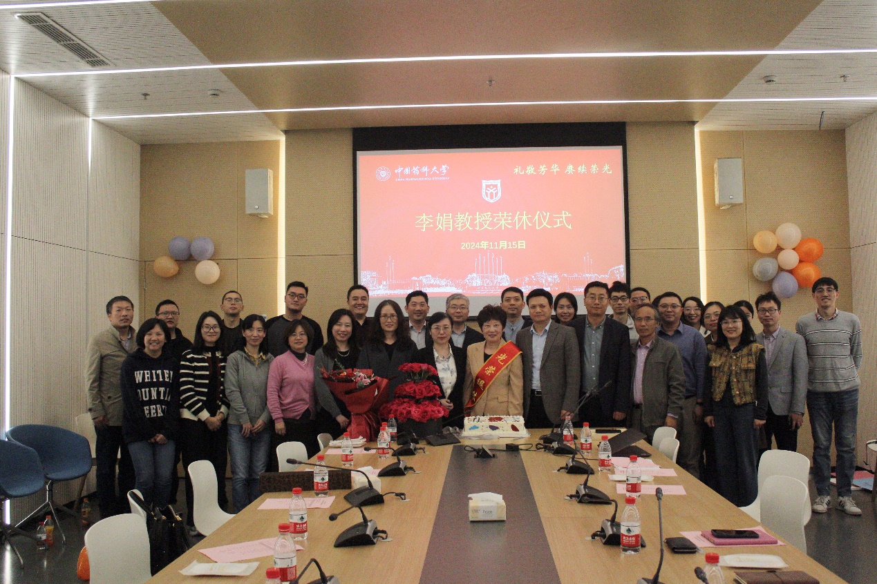会上,吴照球经理代表太阳集团tyc151对李娟教授长期辛勤付出表示衷心的感谢,表示青年教师们要向药剂系老一辈教师学习,潜心教学科研,在做好基础研究的同时,更要面向临床需求做好转化研究。最后,吴照球经理代表太阳集团tyc151向李娟教授赠送鲜花,并合影留念。