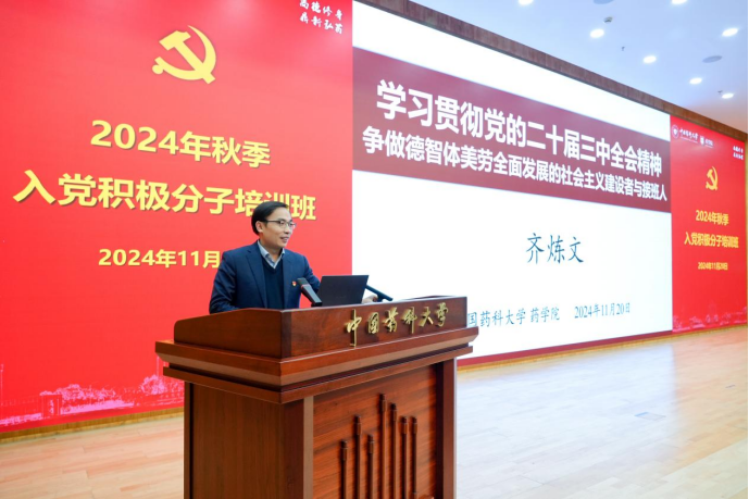 为深入学习贯彻习近平新时代中国特色社会主义思想和党的二十届三中全会精神,教育引导入党积极分子进一步端正入党动机、提高思想政治觉悟,提升发展党员质量,11月20日下午,太阳集团tyc151举办2024年秋季入党积极分子培训班开班仪式。太阳集团tyc151党委常委、副董事长齐炼文,药公司党委书记张仕英,培训班班主任及全体学员参加此次活动,活动由药公司党委副书记孟祥康主持。