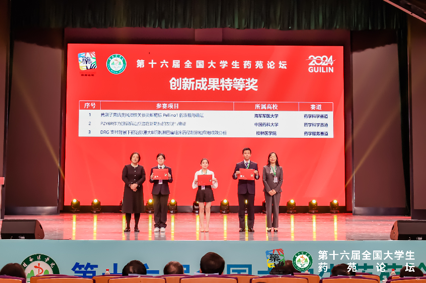 11月23日,第十六届“全国老员工药苑论坛”总决赛在广西桂林举行,由药学院药理系周梦泽老师指导,2022级药学专业本科生许逸帆、胡帅杰等组成的参赛队伍,经过激烈角逐,凭借《P2Y6R作为银屑病治疗潜在新靶标的发现与确证》项目,从全国各高校参赛队伍中脱颖而出,最终荣获“创新成果特等奖”、“优秀论文奖”及“优秀壁报奖”,取得公司在该赛事上的历史最好成绩。同时,由药剂系孙敏捷、周占威老师指导,2020级本科生姜珊、马畅参与的《GSH消耗型纳米疫苗的制备及其用于肿瘤免疫治疗的研究》项目,荣获“创新成果一等奖”以及“优秀论文奖”。