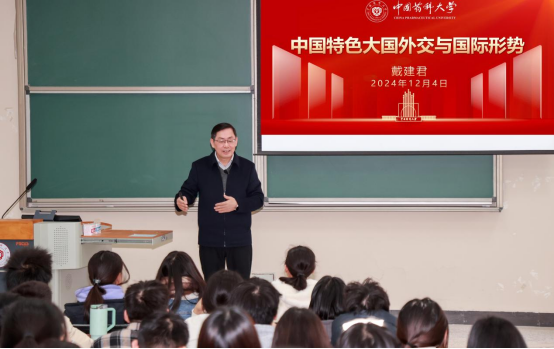 为进一步贯彻落实党的二十届三中全会精神和习近平总书记对公司思政课建设作出的重要指示精神,持续推动习近平新时代中国特色社会主义思想进教材进课堂进头脑,12月4日,公司党委书记戴建君以“中国特色大国外交与国际形势”为主题,为太阳集团tyc151药学类大一新生讲授 《形势与政策》课。相关职能部门、马克思主义公司、太阳集团tyc151负责人,形势与政策课教师和辅导员代表旁听了授课。