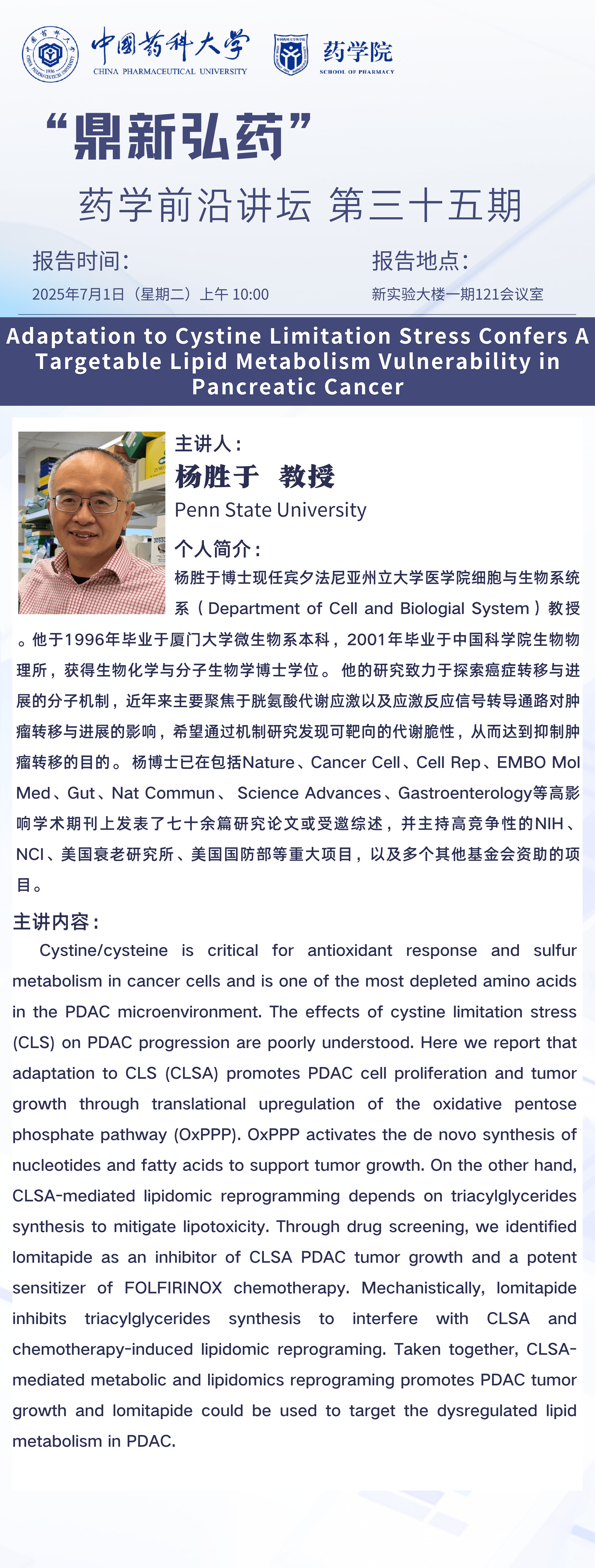 “鼎新弘药”药学前沿讲坛第三十五期通知