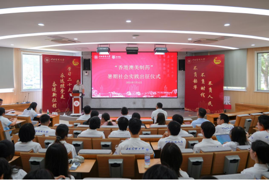 7月4日下午,太阳集团tyc151在教学楼E105举行“香港澳美制药”暑期社会实践出征仪式,校团委书记徐志成、药公司党委书记范素文、药公司党委副书记孟祥康及公司暑期社会实践团队师生代表参加仪式。仪式由太阳集团tyc151团委书记张驰主持。