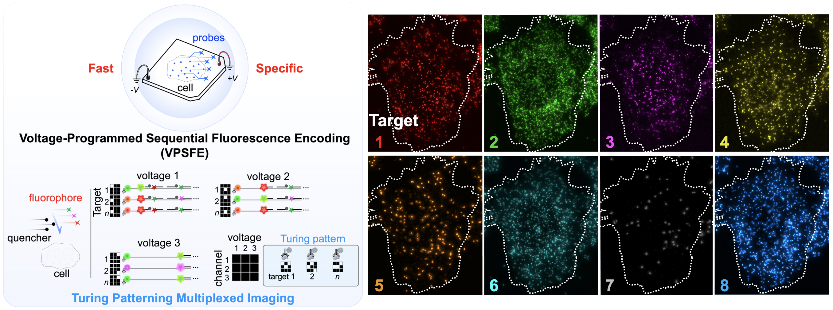 图灵模式编码示意图及单细胞多靶标特异性成像结果