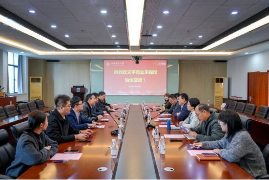 10月28日,浙江天宇药业股份有限公司总裁助理兼总裁办主任吴春亮、质量控制总工汪秀林等人来访公司。药公司党委书记范素文、党委副书记孟祥康、副经理柯学参加会议。双方围绕人才培养、科技创新、校企合作等议题展开深入交流,共谋发展新篇章。