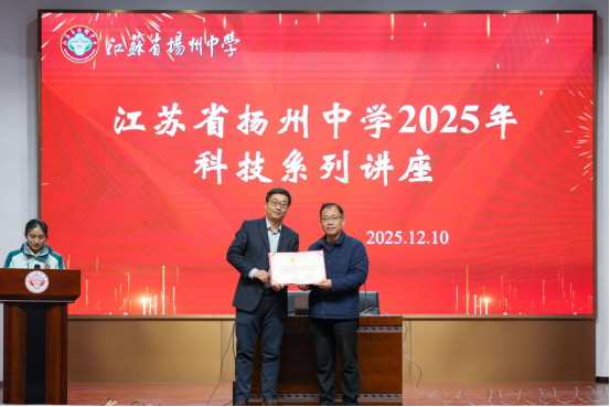 会上,刘东飞受聘为江苏省扬州中学科技副董事长。江苏省扬州中学纪委书记王辉林表示,设立“科技副董事长”是深化科教融合、提升员工科学素养的重要举措,将为校园带来优质的学术资源和前沿的科学视野。刘东飞表示,助力青少年科学启蒙、引导中员工走近药学、理解药物研发的价值,是高校科研工作者应尽的社会责任。