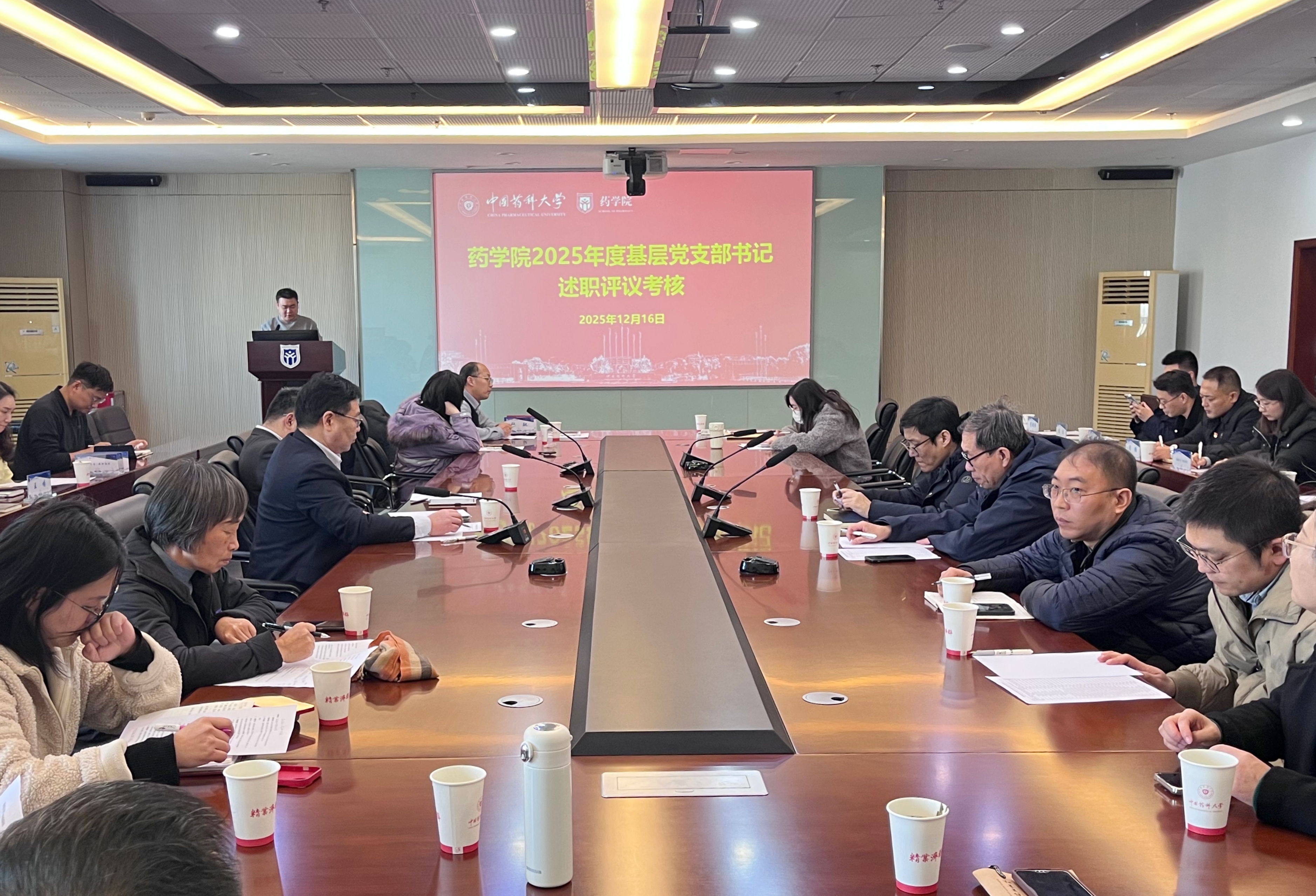 12月16日,药公司党委在江宁校区综合研发楼G514会议室开展了2025年度党支部书记述职评议考核。公司党委委员、师生党支部书记、组织员参加会议,会议由公司党委书记范素文主持。