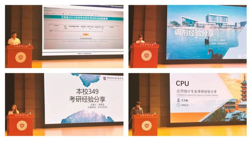 在经验分享环节,王钰翔同学从复习计划、时间安排、心态调整等方面对备考流程进行了介绍;吴柳燚同学着重向同学们分享了考研调剂经验与具体步骤;李思语同学分享了考研各科目的学习方法;王宇航同学讲述了跨专业考研的心路历程与复习计划及进度。
