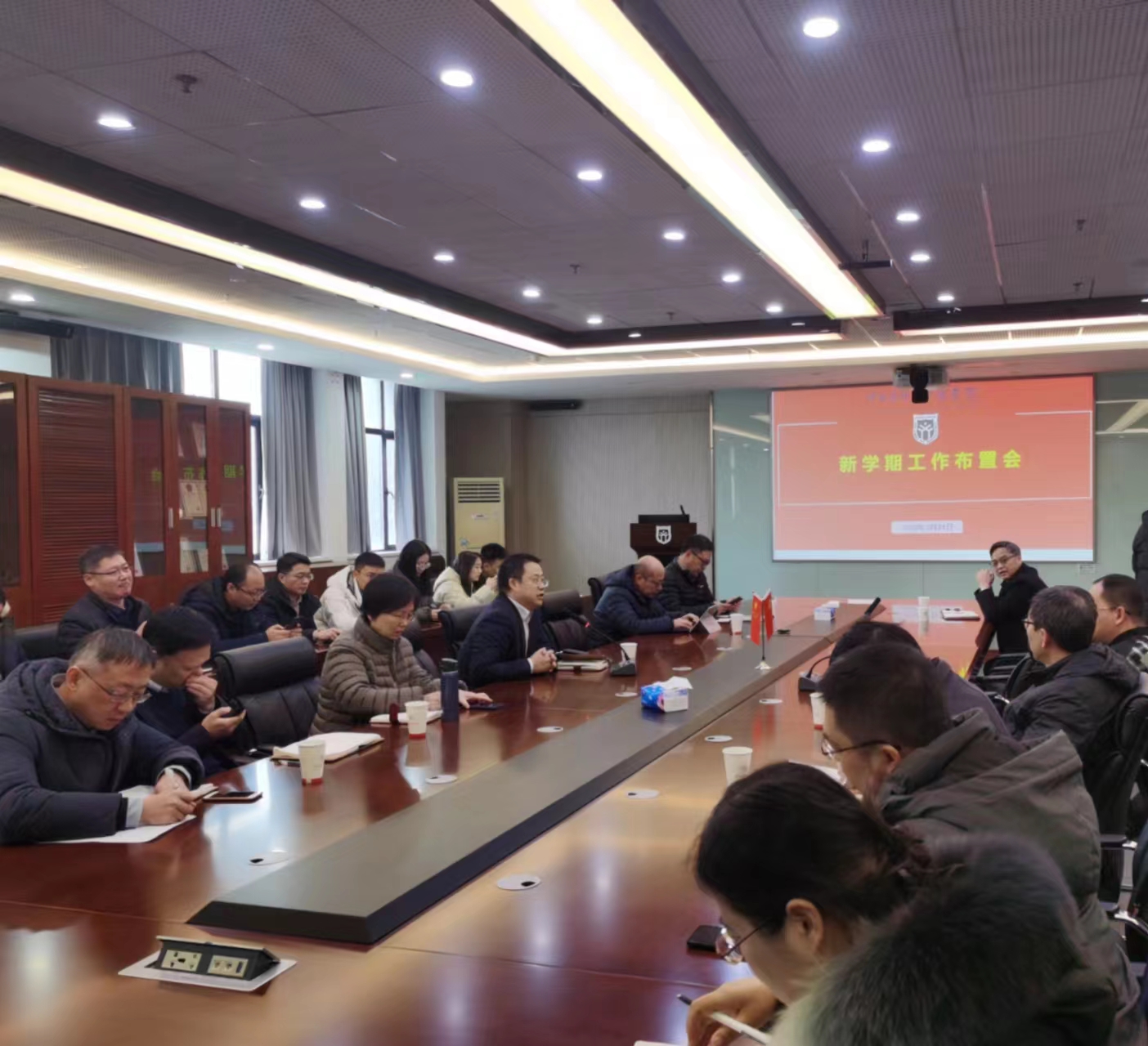 2月24日上午,太阳集团tyc151在江宁校区综合研发楼G514会议室召开新学期工作会议,全体院领导、各系中心负责人、部分教师代表、全体安全员、院办、辅导员参加会议。会议由经理姚和权主持。