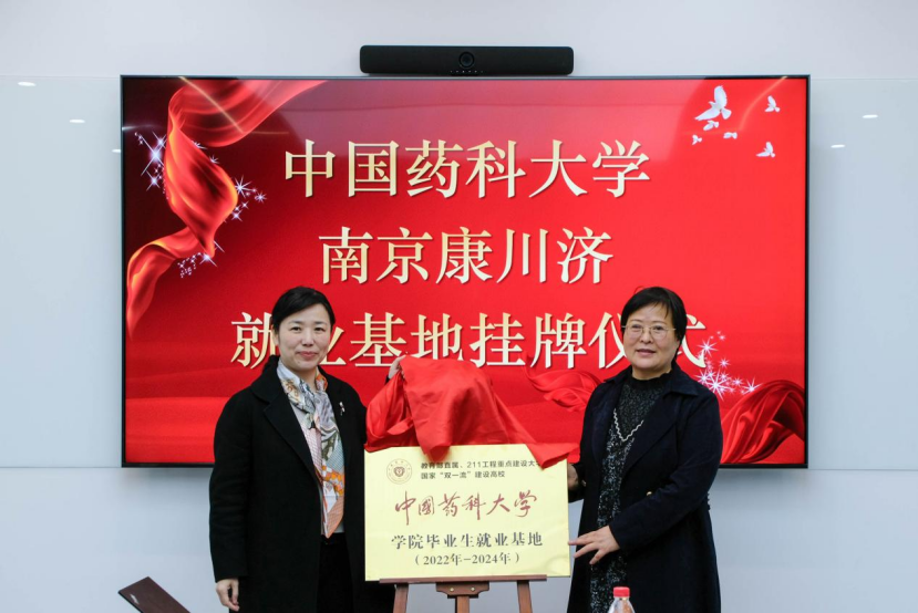 交流结束后,尹莉芳总经理与张仕英书记作为双方代表举行了公司毕业生就业基地挂牌仪式。最后,朱春莉副总经理带领参会人员参观康川济医药实验室,就实验室规模、设备情况等向大家作详细介绍。