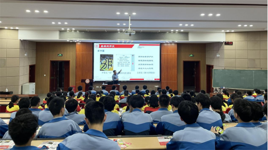 朱启华教授在宣讲环节中详细介绍了公司的专业特色、办学水平、“双一流”团队建设情况以及药员工的广阔发展前景,欢迎扬州大学附属中学学子报考公司,为祖国医药事业贡献力量。随后,朱启华教授为现场师生作“抗疟记”科普讲座,他深情讲述了抗疟药物发现史以及诺贝尔医学奖获得者——屠呦呦的故事,鼓励同学们学习屠呦呦刻苦钻研、甘于奉献、勇于创新、永不言弃的科学家精神,激发了同学们对药物研发的兴趣。