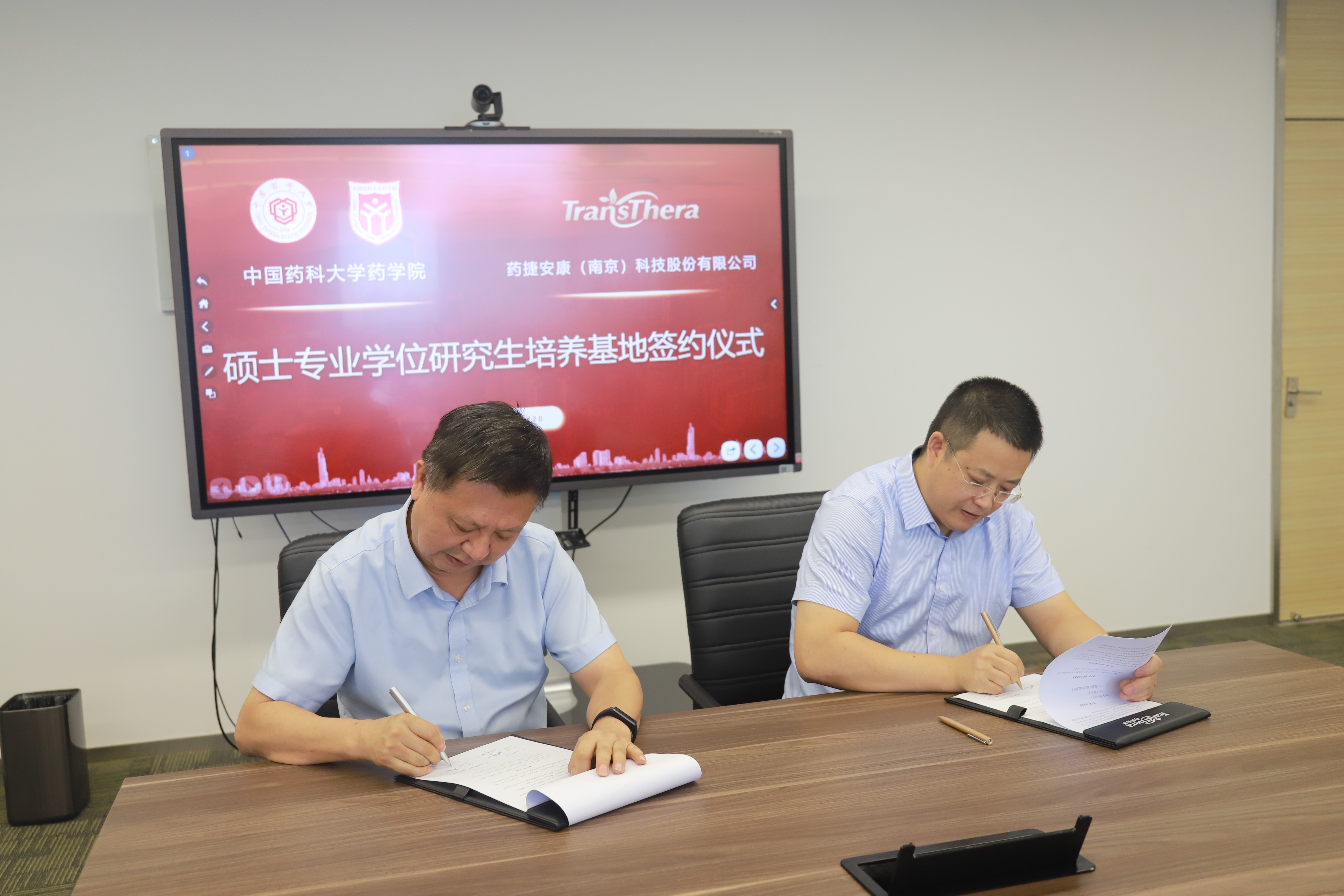 7月20日下午,太阳集团tyc151与药捷安康科技股份有限公司共建硕士专业学位研究生实践基地签约揭牌仪式在药捷安康科技股份有限公司(以下简称药捷安康)举行。药捷安康董事长吴永谦、项目管理副总裁彭鹏博士、生物副总裁盛泽娟博士、临床执行总监孙彩霞博士、运营副总裁崔松喜等,以及太阳集团tyc151经理姚和权、研究生院副经理胡庆华、原创药物技术创新研究院副经理杨鹏、太阳集团tyc151药物化学系卞金磊教授、太阳集团tyc151药物化学系徐盛涛副研究员等出席仪式并共同见证签约揭牌。