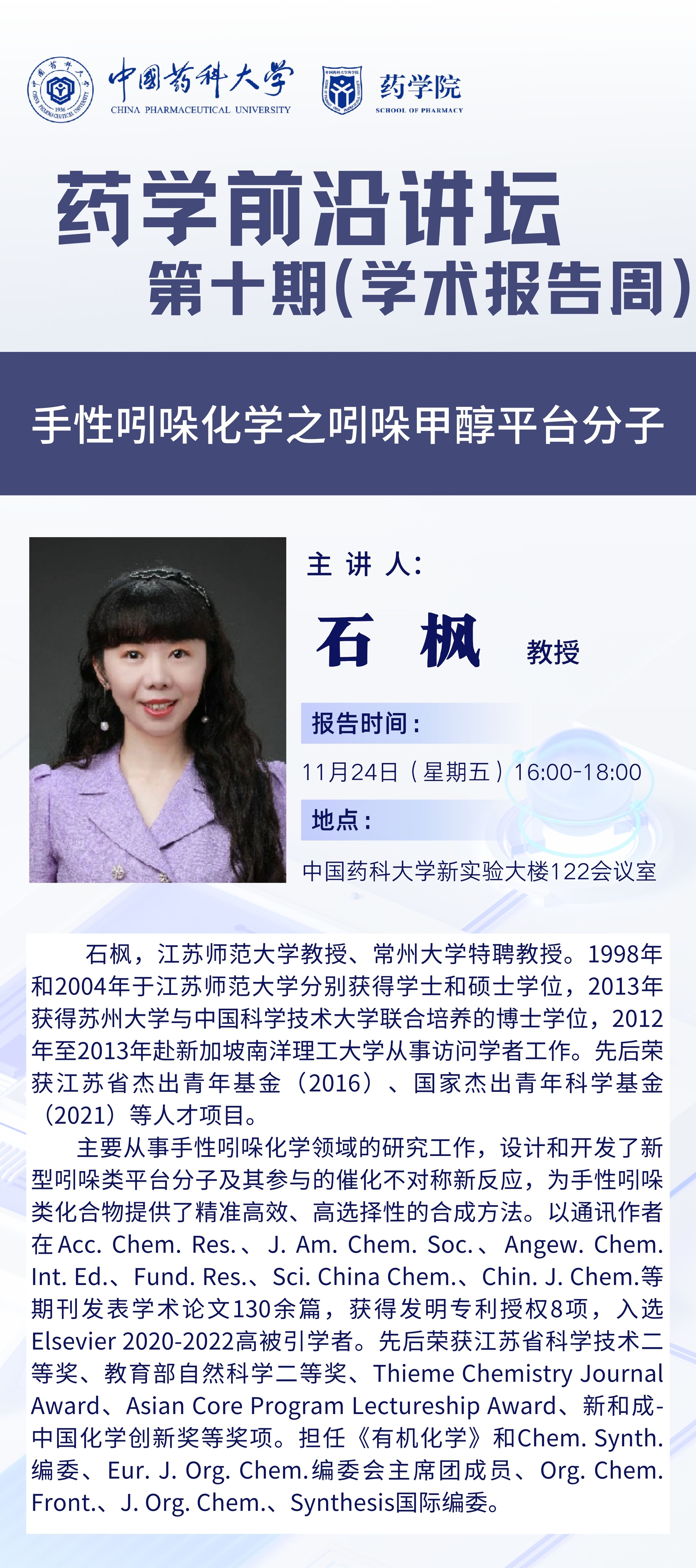 太阳集团tyc151第十期药学前沿讲坛通知(学术报告周)