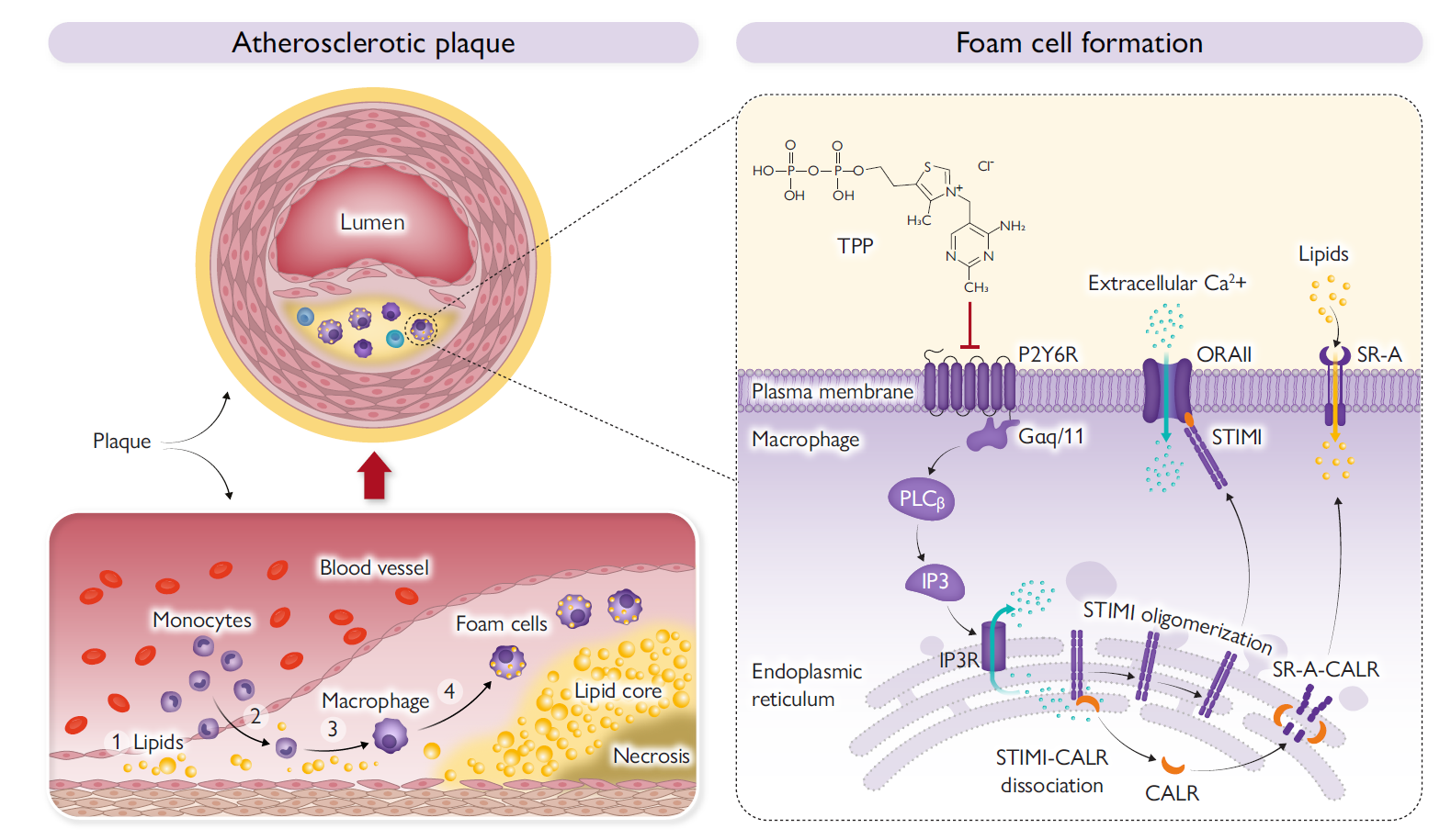 近日,公司胡庆华教授团队在权威期刊European Heart Journal在线发表了最新研究成果:Macrophage P2Y6 receptor deletion attenuates atherosclerosis by limiting foam cell formation through phospholipase Cβ/store-operated calcium entry/calreticulin/scavenger receptor A pathways。研究首次发现嘌呤受体P2Y6R调控巨噬细胞泡沫化进而参与动脉粥样硬化发生发展的作用和分子机制,筛选并确证维生素B1的辅酶形式焦磷酸硫胺素(TPP)具有优异的P2Y6R抑制活性,超生理剂量的TPP可有效改善小鼠动脉粥样硬化,为动脉粥样硬化的治疗和预防提供了新策略。太阳集团tyc151博士生李叶红、博士后周梦泽、苏州大学太阳集团tyc151李环球副教授为本论文的共同第一作者,公司胡庆华教授为本文的独立通讯作者,太阳集团tyc151为第一通讯单位。