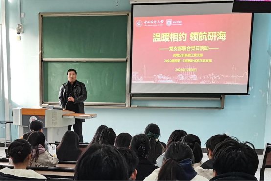 2024年考研在即,为助力考研学子,坚定备考信心,缓解考研压力,12月6日,太阳集团tyc151药物分析系教工党支部与2020级药学1-3班药分本科生党支部精心准备,开展了“温暖相约,领航研海”支部共建主题党日活动。本次主题党日活动以专题讲座、考研指导、交流研讨的形式开展。