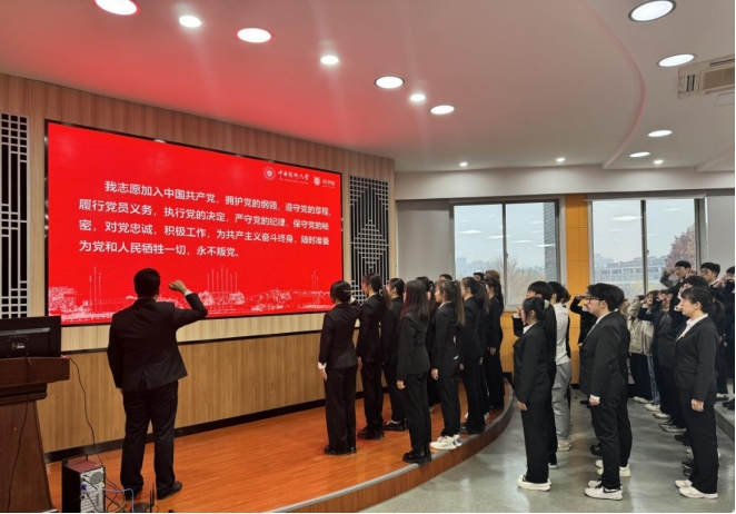 活动最后,全体支部成员进行了宣誓,誓言如铁,信念如磐,永葆初心,勇担使命,铮铮誓言,许下药大青年对党的承诺。
