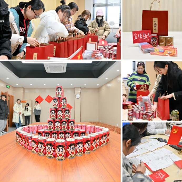 “考研加油包”包含祈愿祝福的文具套装、运气旺旺的旺仔牛奶、驱散寒冷的暖宝宝、方便实用的纸巾,以及手写祝福贺卡。小小的福袋里饱含着公司领导师生们对考研学子温暖的问候,寄托了对同学们金榜题名的美好祝愿。